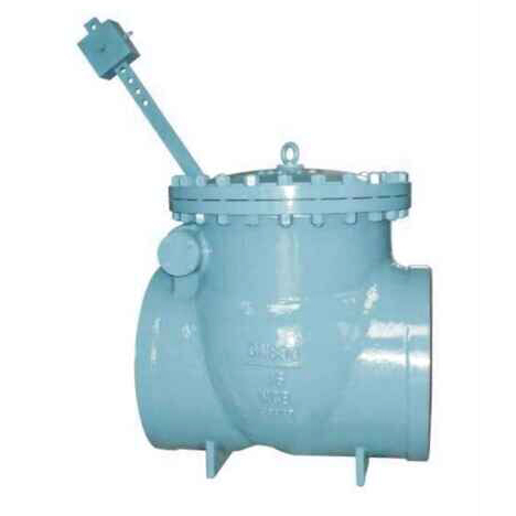 2、重錘通過加長桿和撥叉作用于銷軸,用以平衡和搖桿的重力矩,防止水錘現象的發生。當介質正向流動時,有助于打開閥門,并在運行中保持閥門的平穩和減少振動。