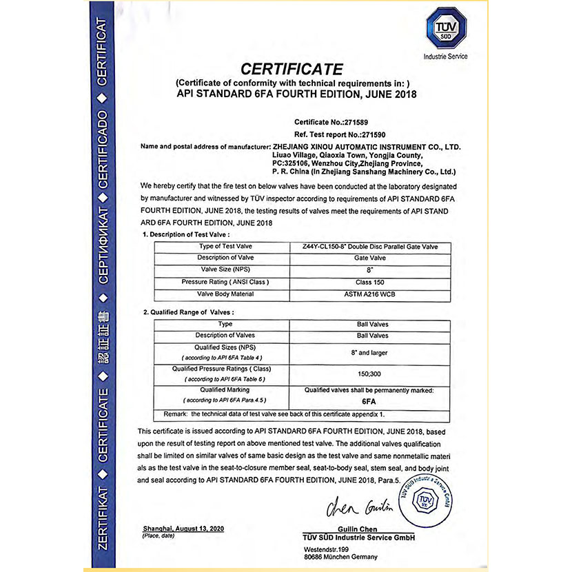 閘閥防火證書 4