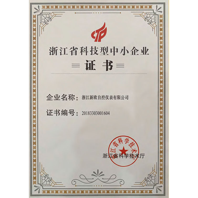 浙江省科技型中小企業證書
